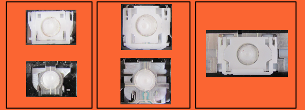 - il kit di tasti di ricambio che include i tre elementi per riparare il tasto : il tasto , il suo meccanismo articolato (cerniera) e la sua molla di gomma (la coppa).