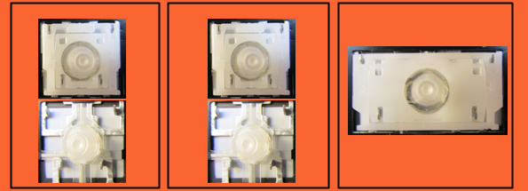- il kit di tasti di ricambio che include i tre elementi per riparare il tasto : il tasto , il suo meccanismo articolato (cerniera) e la sua molla di gomma (la coppa).
