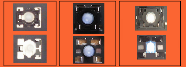 - El kit de tecla de reemplazo que incluye los tres elementos para reparar su tecla: la tecla, su mecanismo articulado (la articulación) y su resorte de goma (la copa).