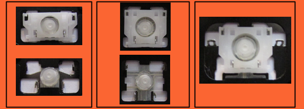 - El kit de tecla de reemplazo que incluye los tres elementos para reparar su tecla: la tecla, su mecanismo articulado (la articulación) y su resorte de goma (la copa).